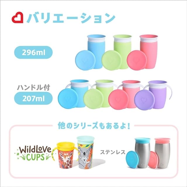 商品名:munchkin マンチキン ハンドル付きミラクルカップ ブルー パステル 6ヶ月から こぼれない プラスチック 子供 ベビーマグ コップ飲み 練習 シッピーカップ 360度 食洗機対応 FDMU10800L