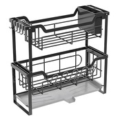 【自動排水×超スリム設計】 水切りラック [どんなシンクにも対応] 水はけスムーズ キッチン収納 洗い物がラクに! 箸立て コップ立て 皿立て スリムでもしっかり大容量 2層タイプ(ブラック)