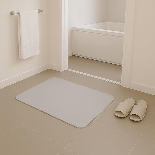 LIVARY【国内吸水試験実施済】 速乾&抗菌仕様 珪藻土マット 洗える 【クセになる踏み心地 】 簡単収納 吸水バスマット 洗える珪藻土 (グレー)