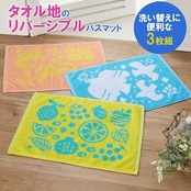 トップ産業(Top-sangyo) 洗濯しやすい タオルバスマット 3柄組 はと ねこ フルーツ 35×50㎝ 綿100%使用 お風呂 洗える 小さめ ミニ かわいい 足ふき 使い分け 浴室 収納 ハンガー 掛け 干し 92145400