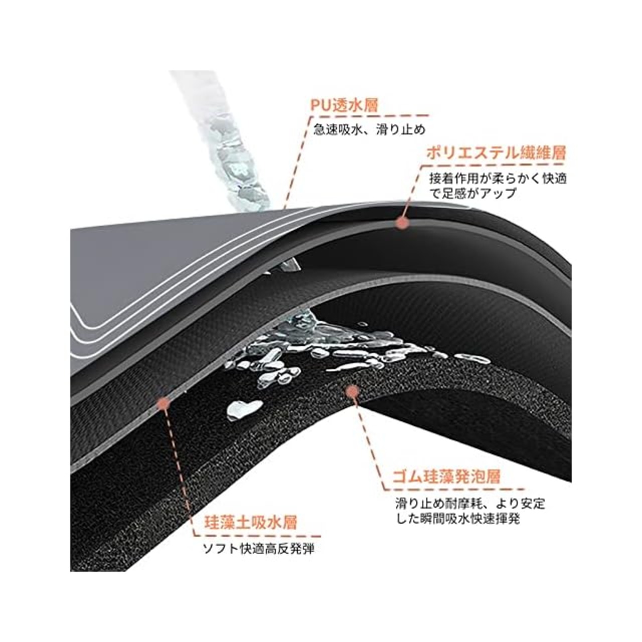 【速乾・吸水性が強い】お風呂マットは驚くほどの超吸水力を持ち、珪藻土バスマットに落ちた水滴は珪藻土への急速な吸水を可能にし、超微細繊維PU透水層は通気性が良く、調湿機能により水分を急速に吸入し、外部に放出すると、すぐに乾く。玄関マットは足の底をスッキリさせ、湿気による細菌の繁殖を抑制します。