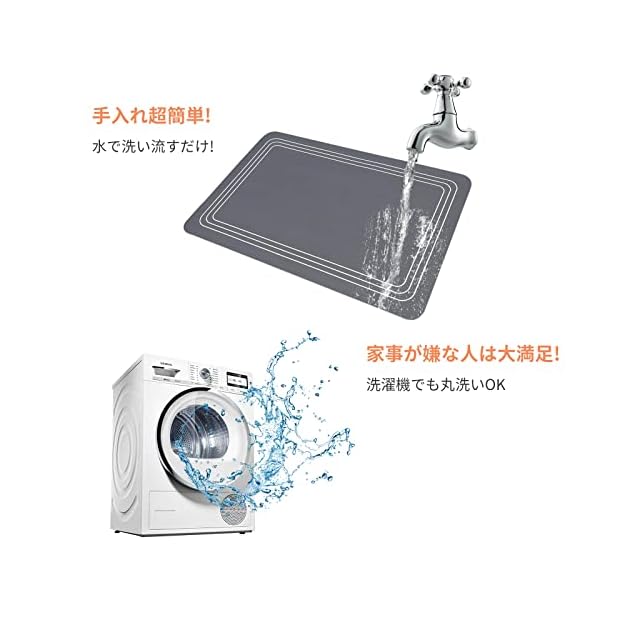 【洗いやすい水洗&機械洗い】珪藻土バスマットサポート両用:水洗または機械洗い、汚れが付着している場合もサッと水洗いするだけで十分です。お風呂マットを干すときは陰干しがおすすめです。バスマットは両手を解放して、簡単に洗うことができます。正しく使えば珪藻土バスマットの寿命も延び、長く使えます。