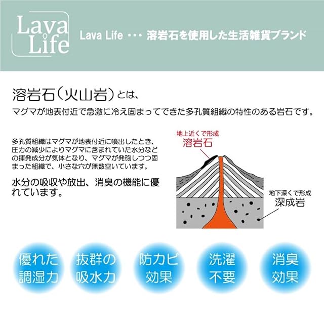 バスマットは次の時代へ。Lava Lifeは次世代の素材”溶岩石(火山岩)”を使ったバスマットです。表面には小さな穴が無数空いており、水分の吸収や放出、消臭の機能に優れています。
