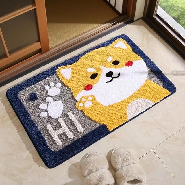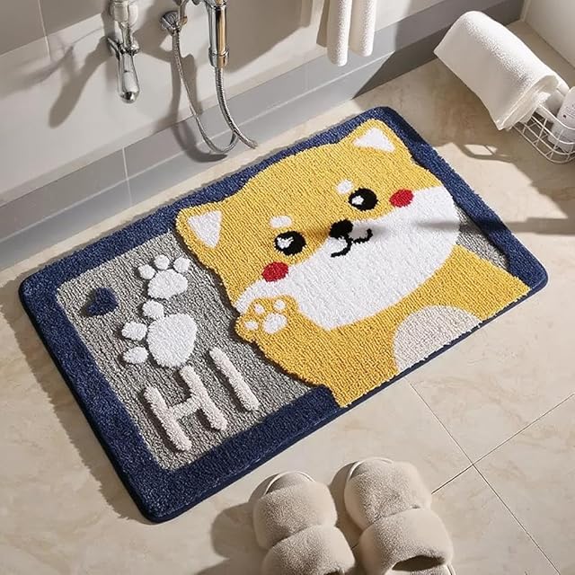 SYitong 玄関マット 浴室マット バスマット 吸水 滑り止め 防カビ 洗えるマット 可愛い おしゃれ ネコ柄 犬柄 廊下 洗面台 キッチン 吸湿性吸水性 柔らかい 厚手おしゃれマット 45×75cm (Hi柴犬, 50×80cm)