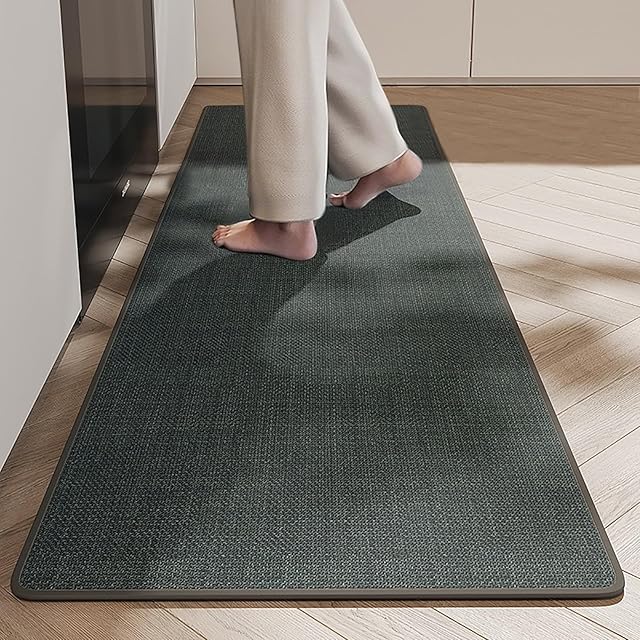 KEISHIN お風呂滑り止めマット 浴室足ふきマット 平織りラグマット 洗える 吸水 速乾 床マット ソフト玄関マット室内 キッチン (グレー, 45X150CM)