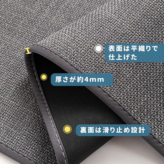 【良い踏み心地】毛足がなくさらりとした肌触りでしっかりと織り込まれていることにより長くお使いいただける敷き物です。冬にも冷たくない感じです。床の段差や歪みなどを気にせずどこでもお気軽にご使用いただけます。