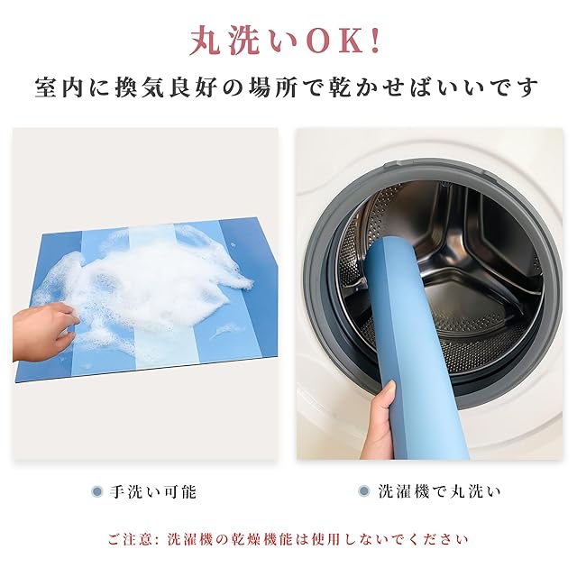 【お手入れ簡単】 なんと洗濯機で丸洗いOK!毎日のお手入れも簡単でストレスフリーで衛生的!汚れが付着した場合もさっと水洗いするだけで十分。正し使えば、珪藻土バスマットの寿命も延び、長く使えます。 (ご注意: 洗濯機の乾燥機能は使用しないでください)