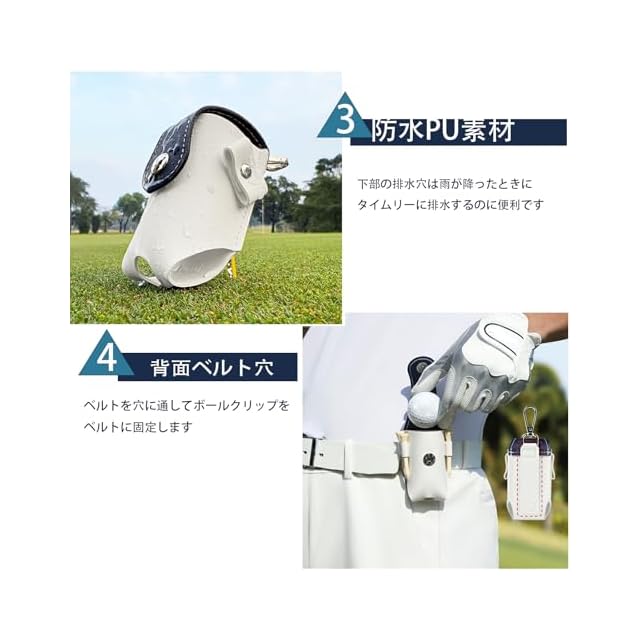 【耐久性のある素材】ゴルフボールケース 防水ナイロンとPUレザー製で、耐摩耗性に優れ、雨や泥による汚染からボールを守ります。排水穴付きのタイプもあります。