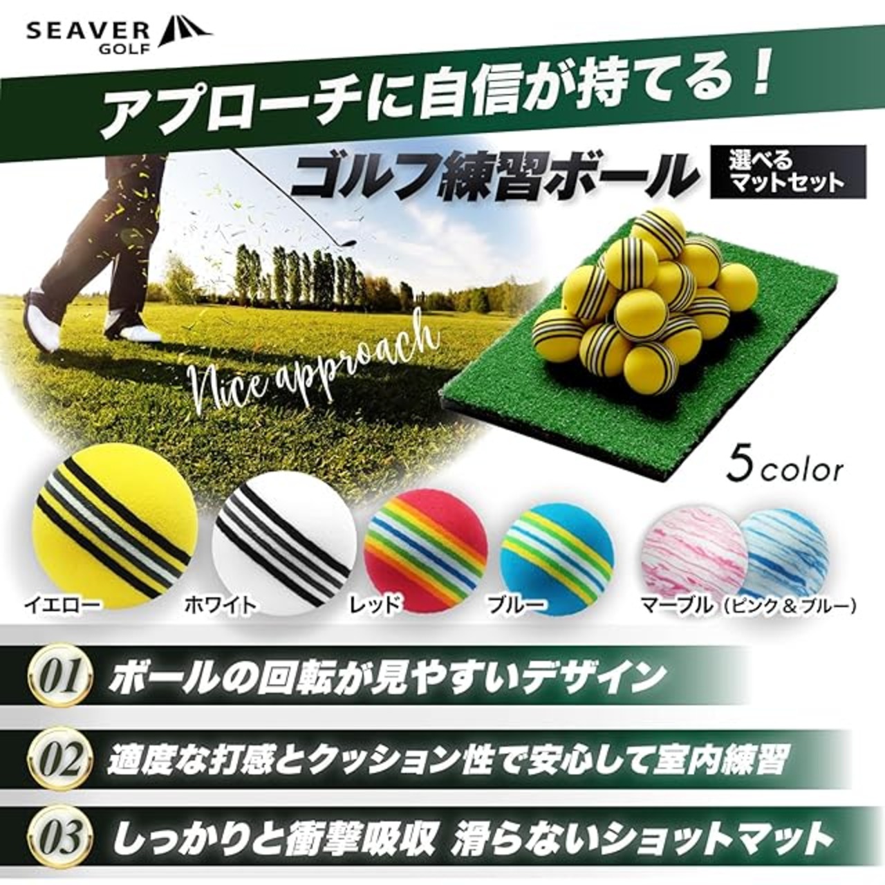 ✅【自宅で安全に練習可能】アプローチ練習に最適なゴルフ練習用ボールです!練習場ではどうしても練習量が不足しがちなアプローチを自宅で気軽にかつ安全に練習いただけます。お得なマットセットもご用意しました!