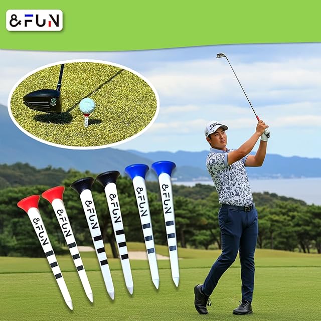 ゴルフティー ロング ロングティー 80mm 6本入 目盛り付き ボールが乗せやすい 紛失なし 見つけやすい 折れにくい 耐久性 ゴルフ用品 おしゃれ 安定感 飛距離アップ &FUN(アンドファン)