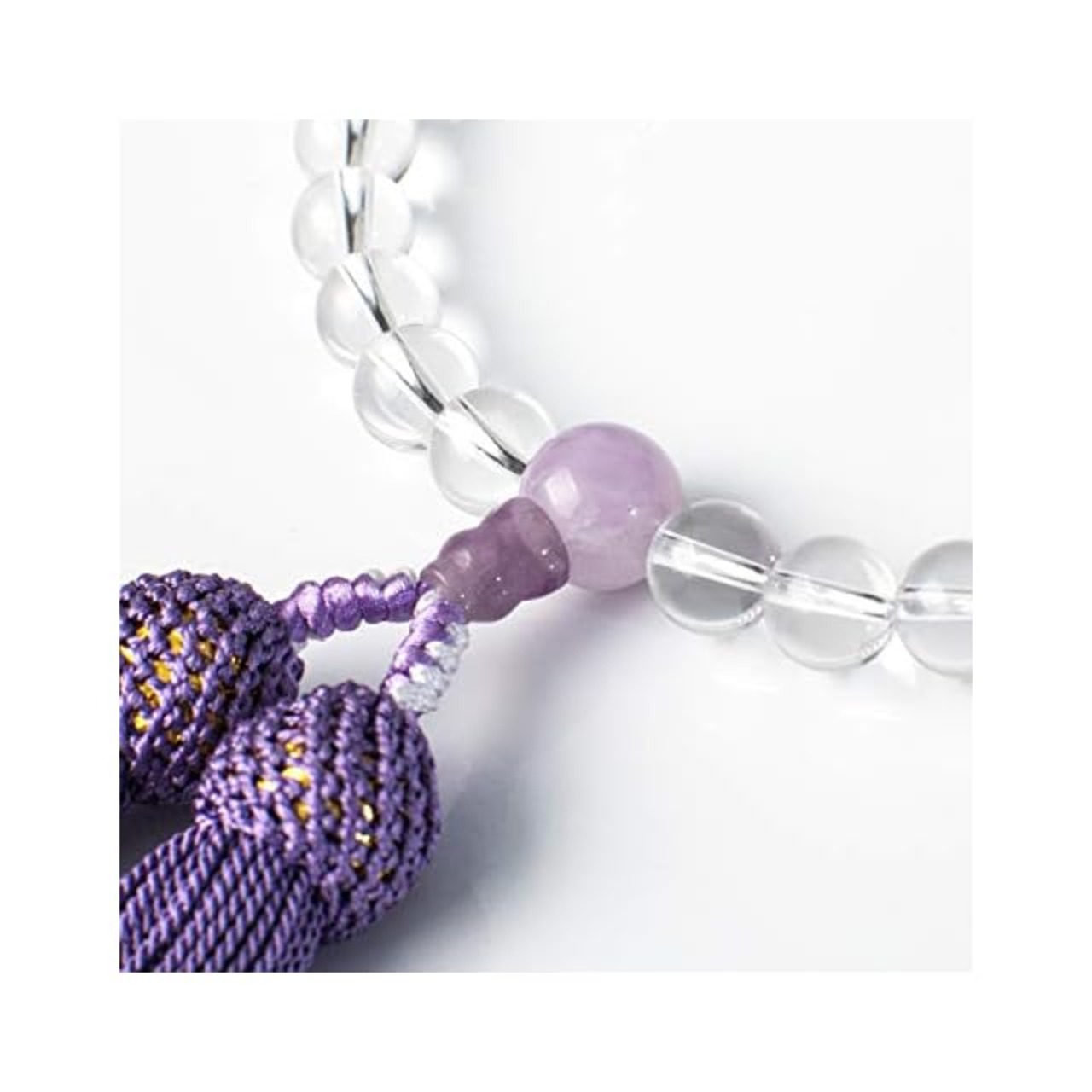 【エレガントな数珠】エレガントな水晶を使用しており、とても女性らしくて綺麗な念珠です。お値段から見えない高級感があり、上品な雰囲気を演出してくれます。