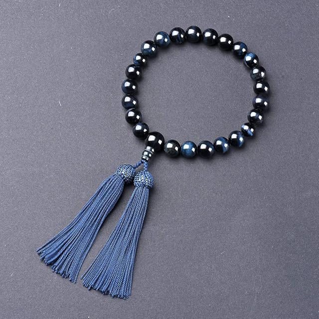 商品名:数珠 男性用 青虎目石 22玉 正絹頭付房 念数珠 お盆 メンズ 紳士用 タイガーアイ 略式数珠 天然石 念誦 頭房 パワーストーン お数珠 じゅず ギフト 贈り物 贈答 法事 葬式 葬儀 法要
