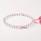 制作工程について:当社では、人工水晶ではなく天然水晶のみを使用しています。端材を利用するのではなく、一塊の原石からカットすることで、素材そのものの特性と職人の技術を余すところなくお届けします。さらに、数珠の組み立てと糸通しは全て手作業で行っております。これにより、職人の精神が込められた「温もり」のある一品ひと品をお作りしているのです。