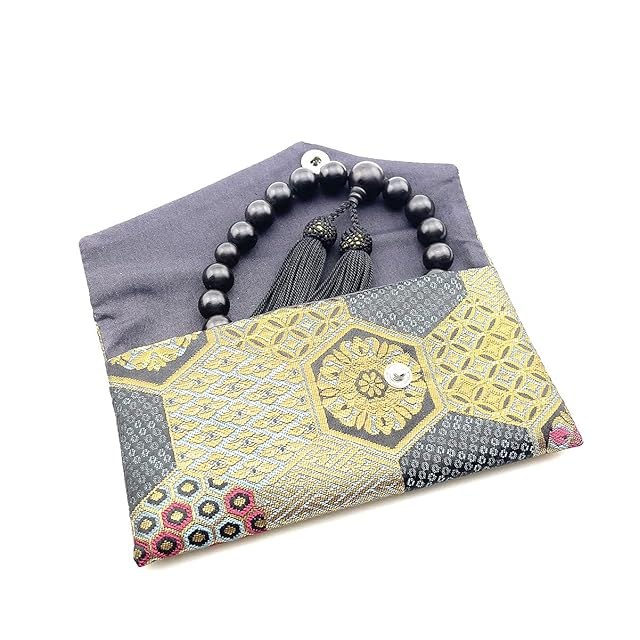商品名:永善念珠屋 数珠 男性用 黒檀 正絹房 22玉 西陣織 金襴 数珠袋 数珠入れ 念珠 念数珠 葬式 葬儀 お通夜 お数珠 略式 じゅず 男性 (黒檀)