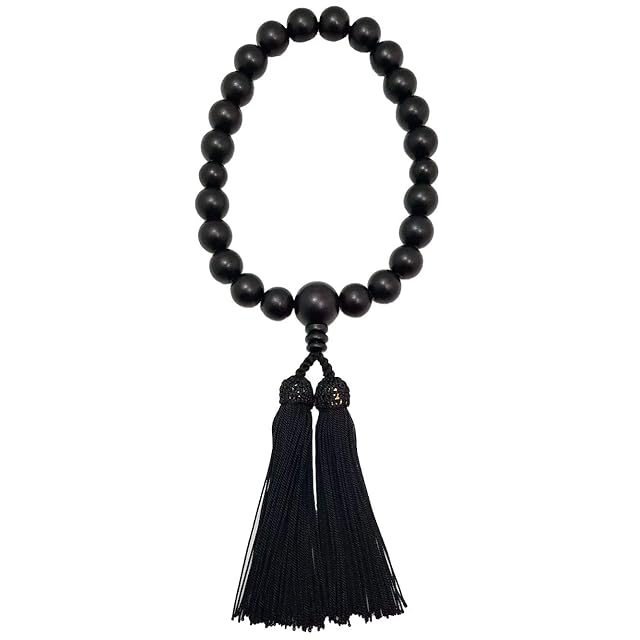 漆黒の銘木、黒檀を使用したお念珠です。素材は硬く、耐久性に優れています。
