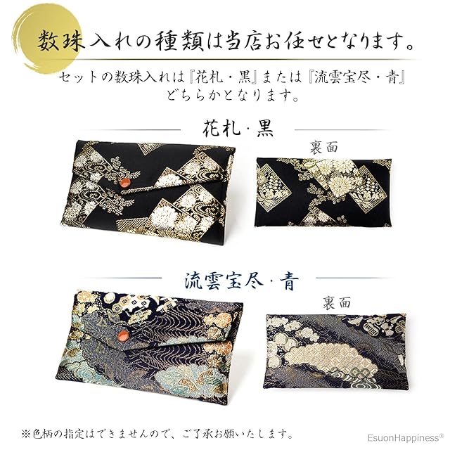 手作りの為、図柄の出方が画像と異なる場合があります。(図柄の指定、数珠と数珠袋の組み合わせの指定はできませんのでご了承お願い致します。)