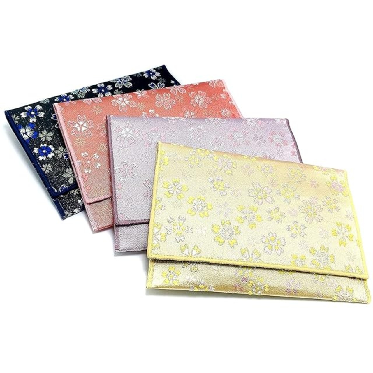 桜模様を丁寧に織り込んだ品のある念珠袋です。見る角度によって煌めきが優美に変化いたします。宗派を問わずご利用いただけます。