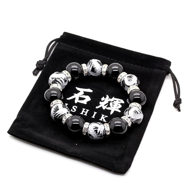 商品名:[石輝] 天然石 銀彫り五本爪皇帝龍オニキス16mm数珠ブレスレット パワーストーン [b202]