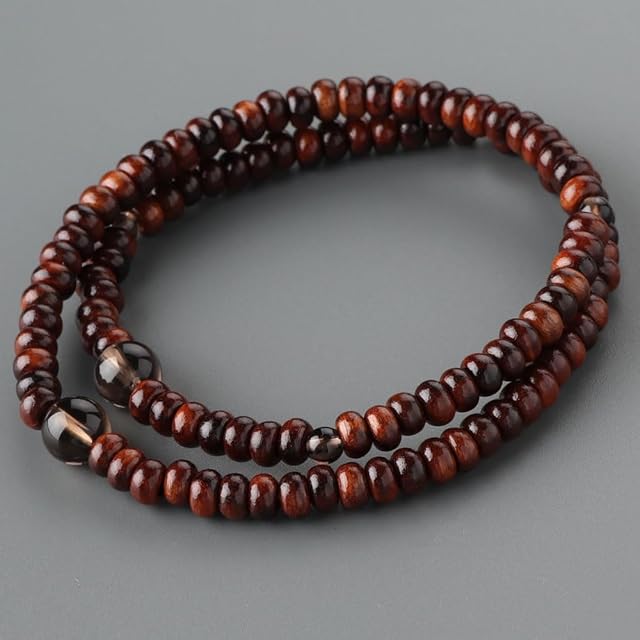 念珠ドットコム ≪選べる8種≫108玉 数珠ブレスレット【腕輪念珠 ブレスレット 天然木 天然石 黒檀 縞黒檀 紫檀 虎檀 黒縞瑪瑙 藤雲石 茶水晶 クリソ瑪瑙 ローズクォーツ 青虎目石 108珠 お守り 煩悩 男性用 女性用 メンズ レディース おしゃれ 贈り物 107000145】【ネコポス配送】 (E.栴檀×茶水晶)