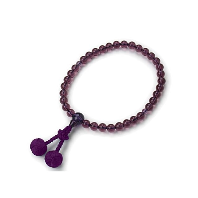 創業80余年の老舗数珠メーカーの熟練数珠職人が丹精込めて仕立てた逸品で安心の日本製です。 <br> <br> ガラスを紫水晶似に加工して仕上げた女性用お数珠です。 <br> 天然石の紫水晶でこれ程の色目、透明性のものとなると大変高価になってしまいますが、 <br> 高価な天然紫水晶にも見劣りしない大変お値打ちなお数珠です。<br> <br> <数珠袋付>携帯に便利な数珠袋をお付けさせて頂きます。<br> ファスナーがL字型で出し入れしやすい数珠袋です。 <br> <br> ・主玉:紫水晶(ガラス)7mm <br> ・天玉:紫水晶(ガラス)5mm <br> ・親玉:紫水晶(ガラス)10mm <br> <br> 当店が製作した事を証明する「念珠堂製作証明書」カード付。<br> <br> 全ての宗派でお使い頂けます。