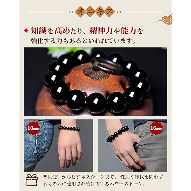 商品名:オニキス 数珠 黒瑪瑙 6mm パワーストーン 天然石 ビーズ ブレスレット ブラック 黒 金運 仕事運 男性用 女性用 メンズ レディース クリスマス プレゼント(6mm)