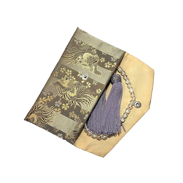 西陣織念珠入 数珠入 念珠袋 数珠袋 京念珠 京仏具秀蓮 … (中, 鳳凰 金)