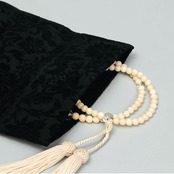 フォーマルシーンにふさわしい、上品で高級感のあるフロッキー加工(特殊な植毛技術の立体的な加工)の更紗の数珠入れ。箱入り。