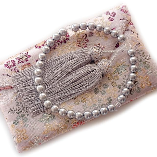 永善念珠屋 数珠 女性用 パール 頭付房【西陣織 数珠袋付き】全ての宗派で使える じゅず 女性 念珠 手作り