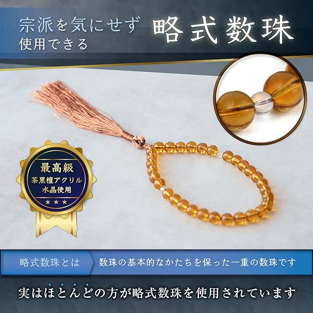 [祈リノ] [静養寺 前島住職推薦]数珠 男性用 お数珠 じゅず 略式数珠 念珠 男性 葬儀 お葬式 茶色 JZ-T1