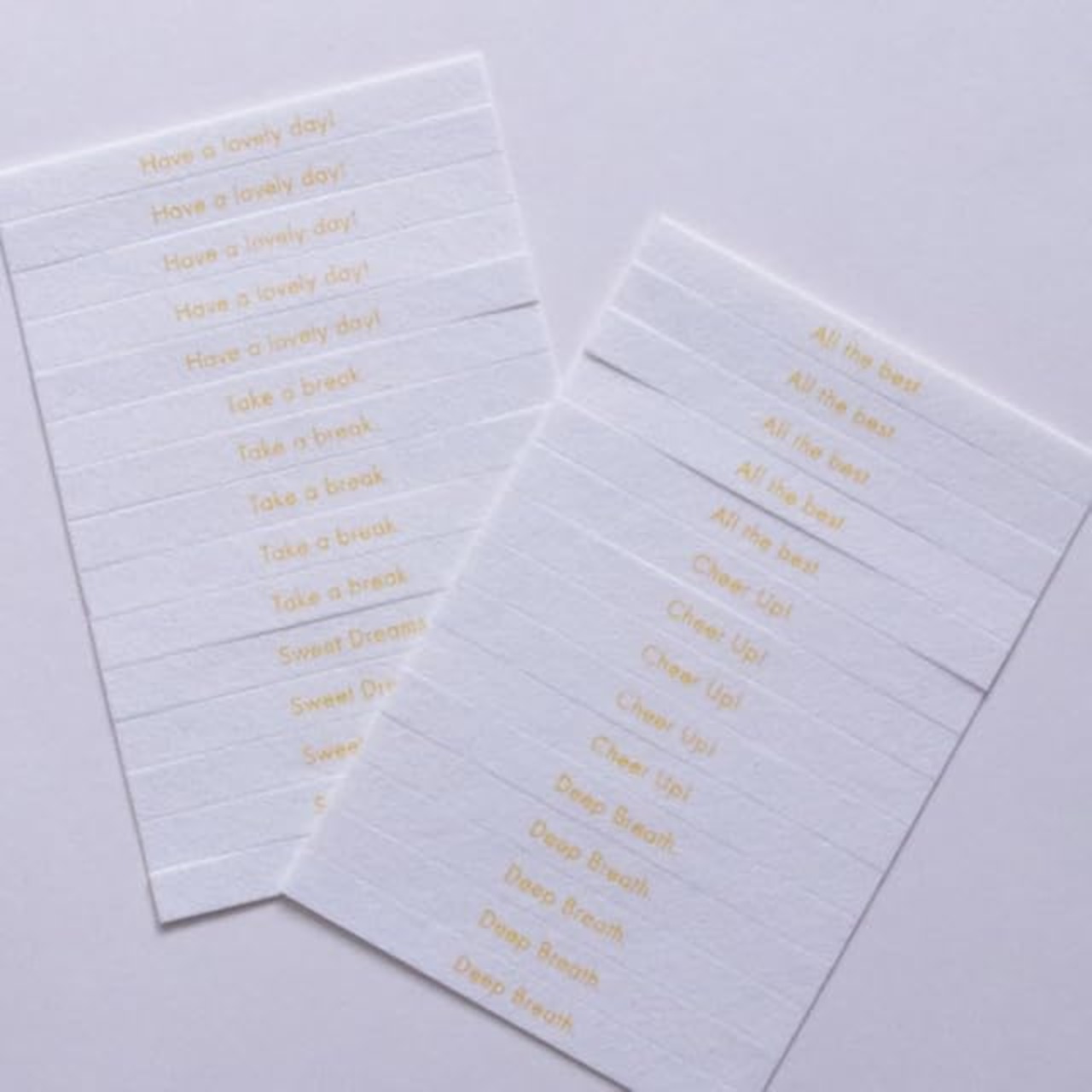 優雅な沈香の香りやまろやかな白檀の香りなどをベースとした全5種の香りがラインナップ。また和紙にはポジティブなメッセージがプリントされています。