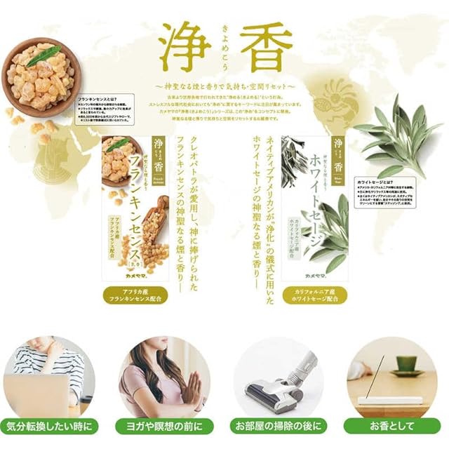 【日々の浄めに】忙しない日々を過ごす現代人であるわたしたちは、知らずうちにストレスやネガティブエネルギーをため込んでしまっています。学校や仕事から帰ったら、手を洗う感覚で浄香をつける。神聖なる煙と香りで、すっきりリセット習慣。