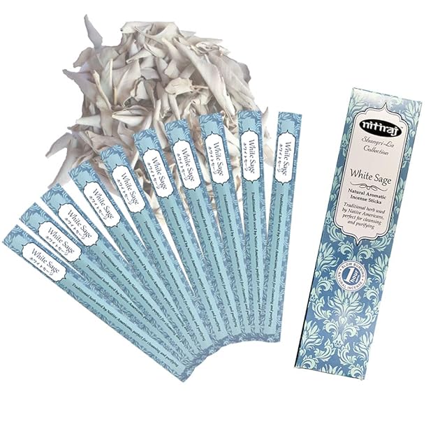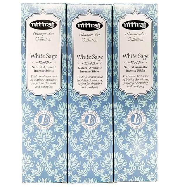 お香、アロマインセンスNitiraj(ニティラジ)White Sage(ホワイトセージ)3箱セット (30本/1箱10本入り)天然素材使用