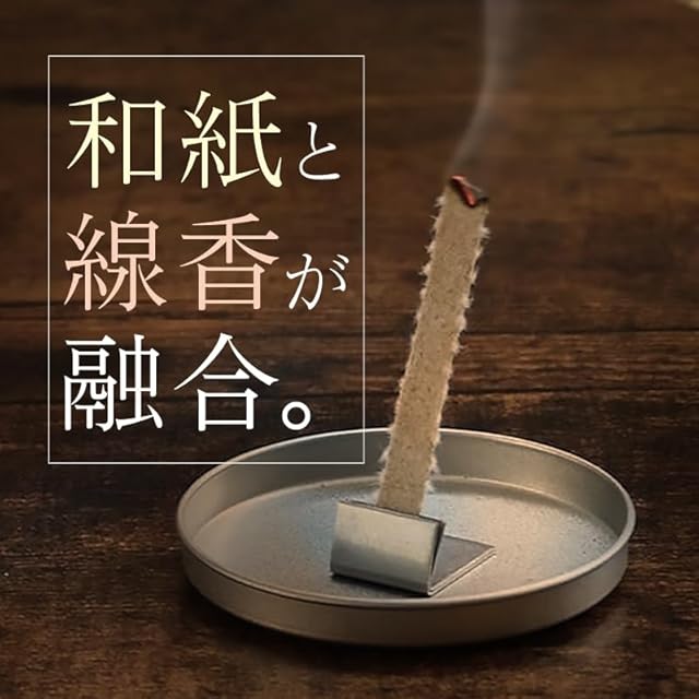 和紙と線香を融合させた新しいお香。通常の紙のお香よりもより濃厚で芳醇な香りを実現しました。 紙のお香にありがちな、紙の燃える匂いはありません。 燃え尽きた後も長くしっかりと香りを感じて頂けます。 専用スタンド付き/容器の蓋を香皿としてご使用頂けます。