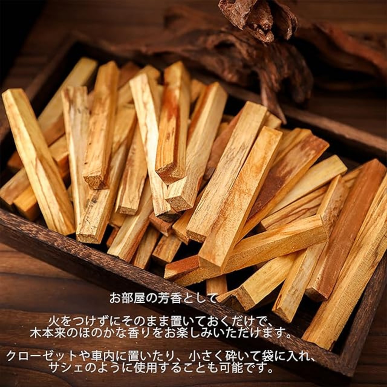1.100%天然ペルー産 — 自然に倒木した木のみを採取し、農薬不使用。自然乾燥・ハンドカットで仕上げた本物の香木です。