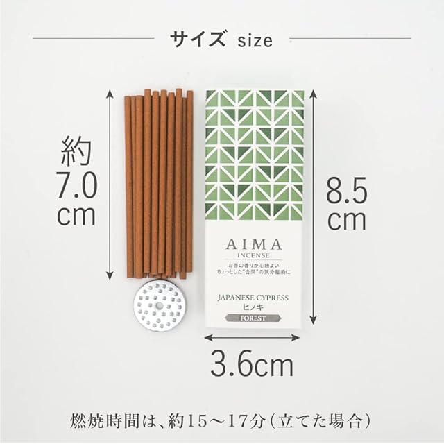 商品名:藤栄(FUJIEI) AIMA お香 ヒノキ お香立て付 15本入り 約7cm A-004 新鮮 森林浴 スティック タイプ 香り アロマ リラックス 気分転換 リビング 寝室 おうち時間 作業時間 北欧 モダン 和洋折衷 ギフト プレゼント 贈り物 日本製