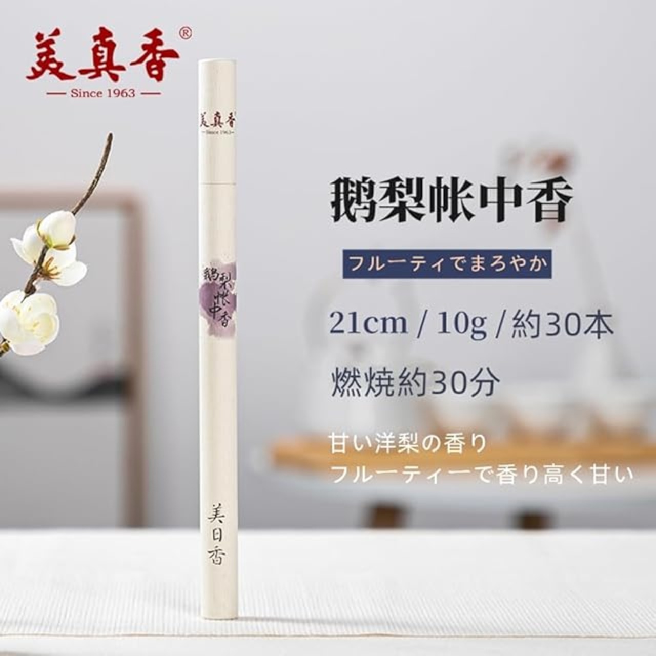 仕様:内容量:10g/約30本(21cm长) 燃焼時間:約25~35分(無風時) 効果: リラックス 特徴:鵝梨帳中香フルーティーな香りフルーティーで香り高く甘い甘い洋梨の香り 場所:ピアノ、囲碁、書道、絵画、お部屋や玄関、お仏壇用、神棚、ヨガや瞑想、座禅。