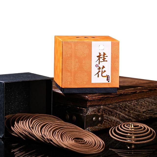 美真香 お香 檀香 渦巻型線香 特選白檀 お香コイル 天然香料 48巻入 (4時間) 龍涎香 桂花 キンモクセイ 煙の少ない 白檀アロマ アロマ リラックス 贈り物 浄化 (キンモクセイ(桂花 ))