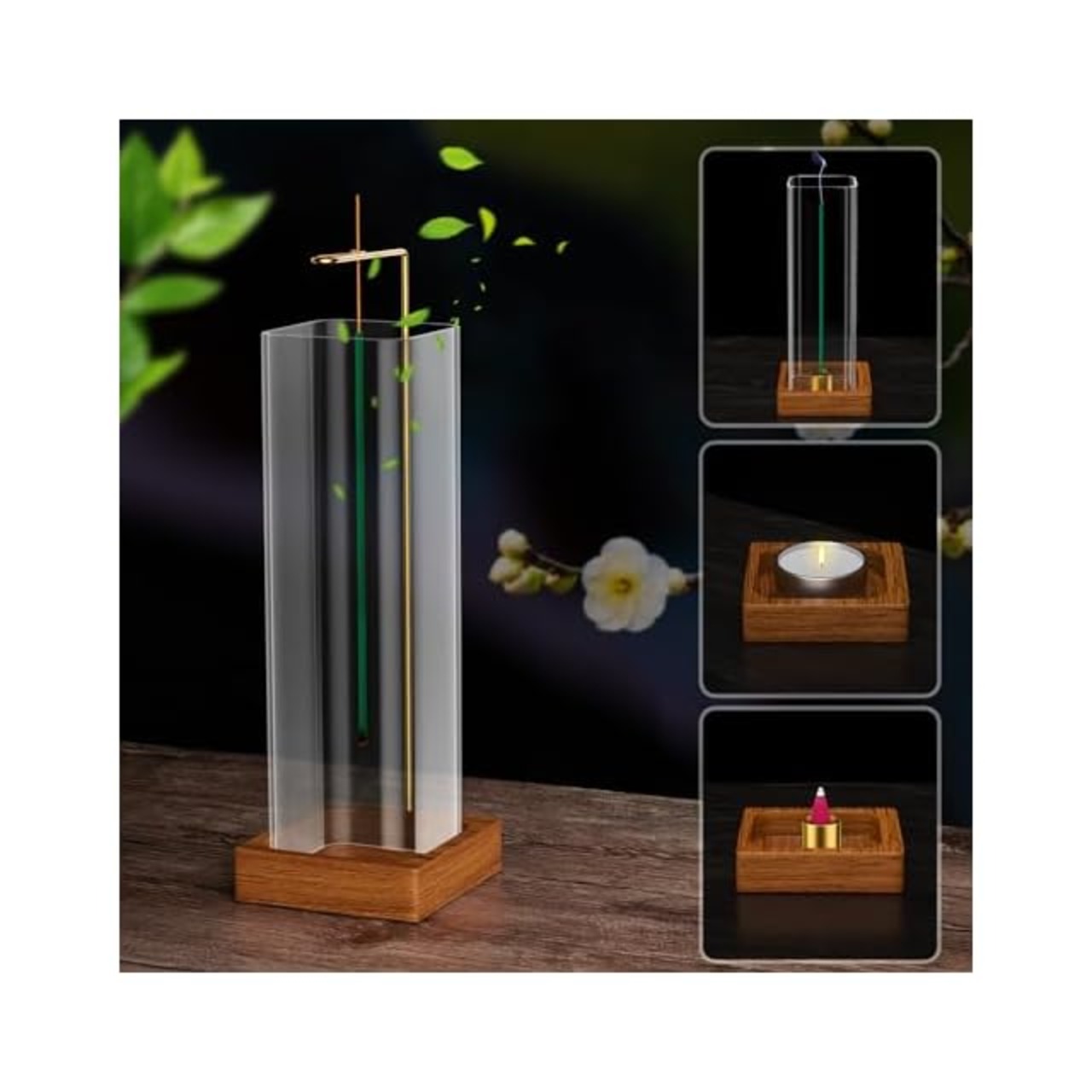 Holdm お香立て おしゃれ 線香立て ガラス 35cm長寸・中寸・短寸・コーン・線香・キャンドル使用可能なインセンスホルダー アロマスティック 癒やし香炉 (ウォールナット)