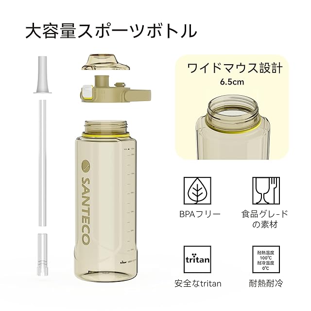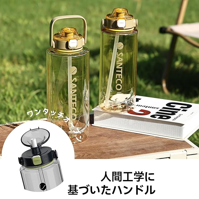 SANTECO 水筒 1500ML 2000ML ボトル BPAフリー 超軽量 携帯便利 おしゃれ 洗いやすい キャリーハンドル付き おしゃれ スポーツ