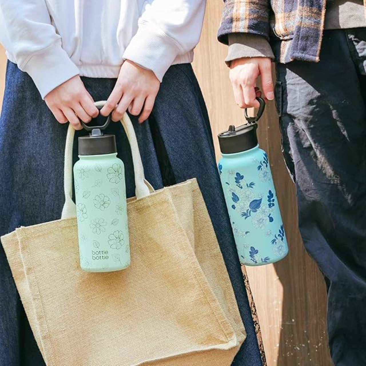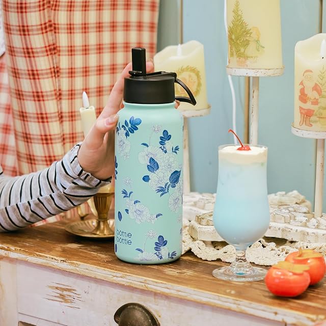 BOTTLE BOTTLE 1リットル 水筒 ステンレス ウォーターボトル 子供 直飲み ステンレス 保温保冷 二重構造 真空断熱 持ち運び アウトドア ブルーフラワー