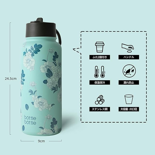 商品名:BOTTLE BOTTLE 1リットル 水筒 ステンレス ウォーターボトル 子供 直飲み ステンレス 保温保冷 二重構造 真空断熱 持ち運び アウトドア ブルーフラワー