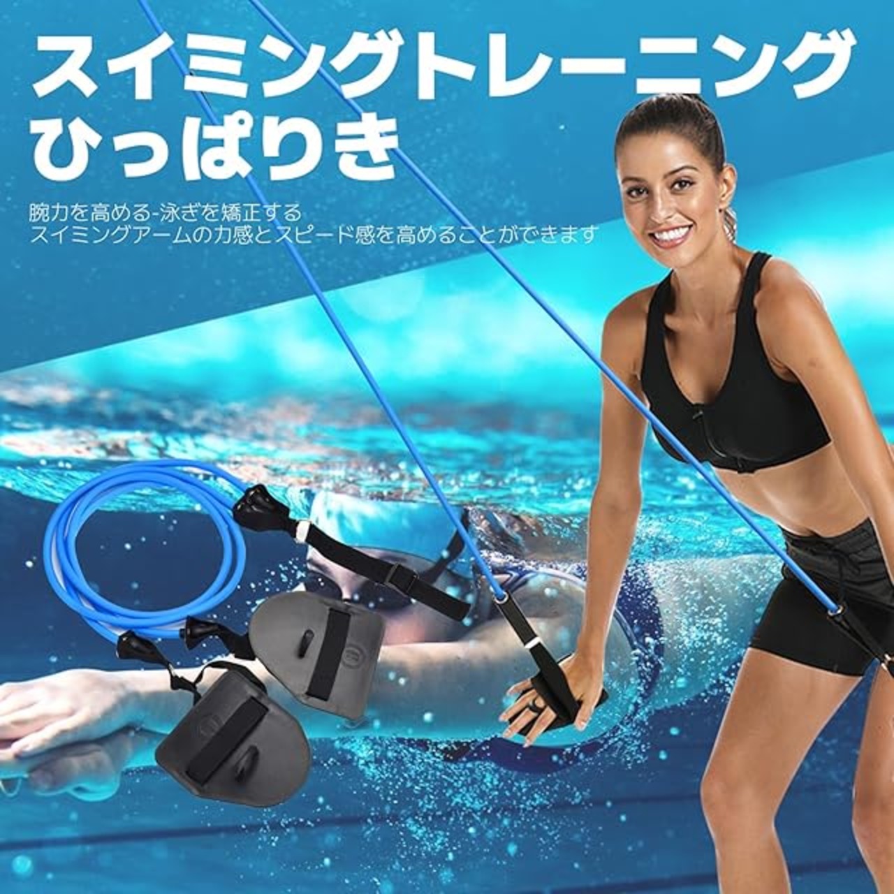【高弾力 水泳 の トレーニングに!】こちらの商品は 水泳用 トレーニングチューブになります。こちらのトレーニングチューブは高弾力で、パドルがついているため、水泳で使う必要な筋力を陸上で強化できるほか、肩周り の柔軟性 アップ にもご活用いただけます、伸縮性のあるワイヤーロープよりも優れており、トレーニングの強度も優れています。