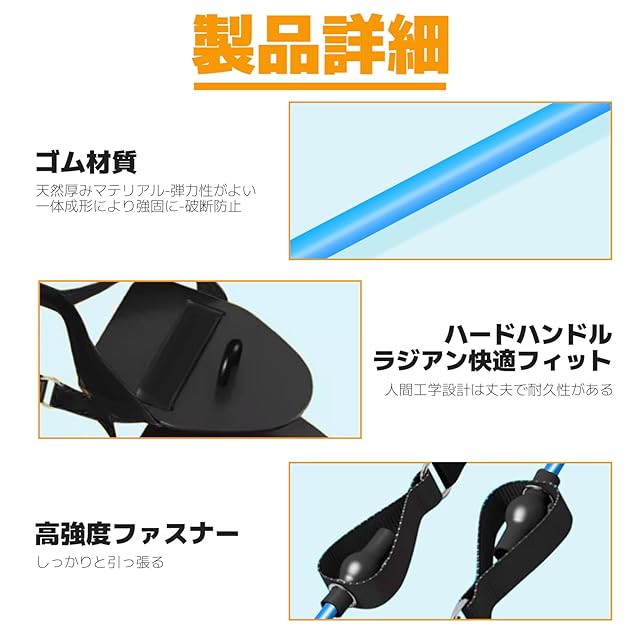 【商品内容】素材:PP + TPE、トレーニングチューブ×1点、収納袋×1点、カラビナ×1点、全長:120cm