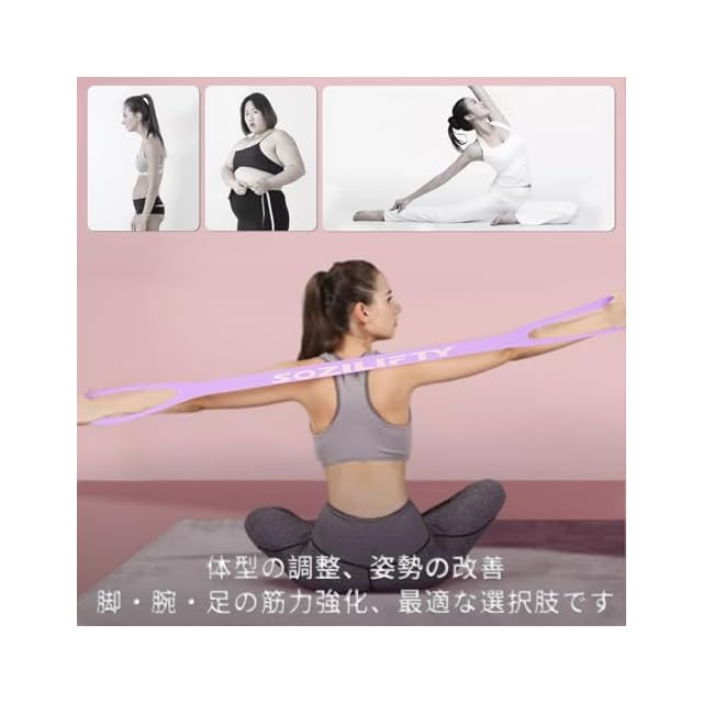 商品名:Sozilifty フィギュア8 レジスタンスバンド|エラスティックバンド|ストレッチバンド|収納ポーチ付き|腕・肩・背中・脚のストレッチ&トレーニング|ヨガ・ピラティス対応|自宅・オフィスで使える携帯エクササイズロープ(パープル)