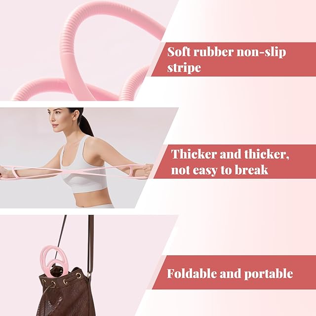 BOROLA フィギュア8型トレーニングバンド – 男女兼用・3段階強度・背中・肩・腕用ストレッチバンド・ヨガ・ピラティス・自宅エクササイズ用・ポータブル筋トレチューブ(ピンク)