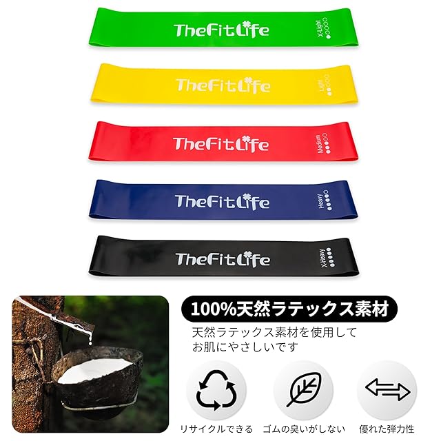 商品名:TheFitLife トレーニングチューブ 筋トレチューブ フィットネスチューブ (黄/緑/赤/青/黒)