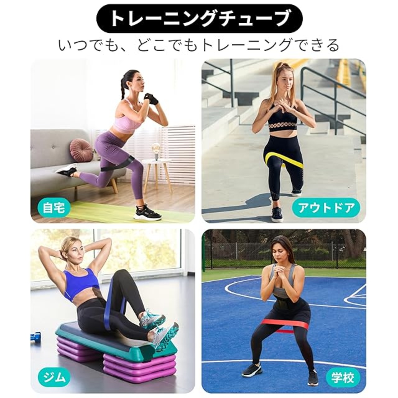 【5から59kgまで負荷が変えられます】5種類の負荷のトレーニングバンドがあり、組み合わせて自分にあった負荷を調節できます。幅が広く負荷をかけた時の安定感が抜群です。ゴムバンドは自在に伸縮できますので、筋トレ、体幹トレ、ストレッチ、美尻など幅広く活用できます。ちなみに、普段鍛えられなかった内転筋はスクワットでトレーニングできます。