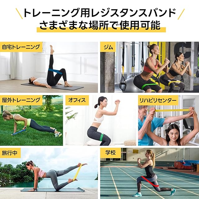 全身を効率的に鍛える多用途バンド:1本で腕・脚・背中・お尻・体幹まで幅広くトレーニング可能。筋力トレーニング、ヨガ、ピラティス、ストレッチ、さまざまなメニューに対応。内転筋など普段使わない筋肉も刺激できます。