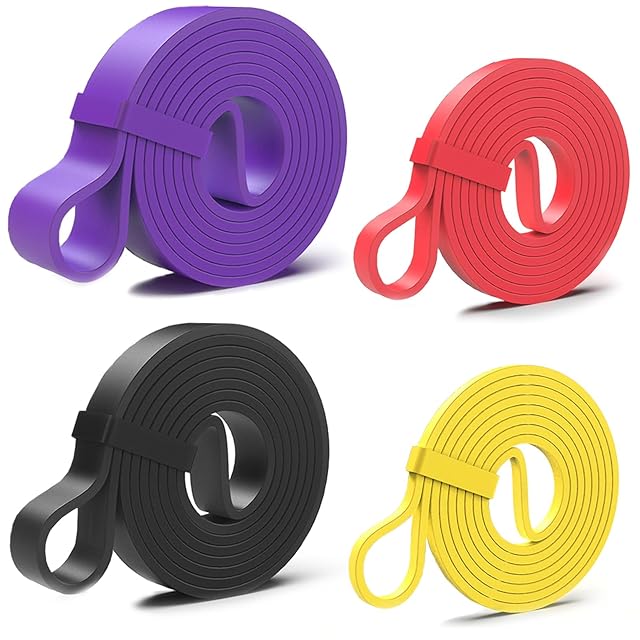 【異なる色と4つのトレーニングベルトレベル】:4つのプルアップ補助ベルトは異なる色に対応し、黄色(5〜10ポンド)、赤色(15〜35ポンド)、黒色(25〜65ポンド)、紫色(35〜80ポンド)、複数のトレーニングベルトを単独で使用または組み合わせて挑戦を増やすことができる。