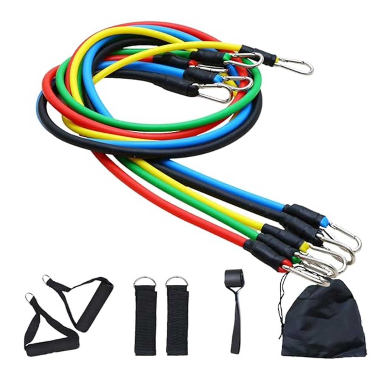 11点セットトレーニングチューブ – 自宅で本格筋トレをサポート! 自宅や外出先でも手軽に筋トレができる 11点セットのトレーニングチューブ 。耐久性のある高品質ゴム素材を使用し、5段階の負荷調整が可能。初心者から上級者まで、自分に合ったトレーニングを楽しめます。
